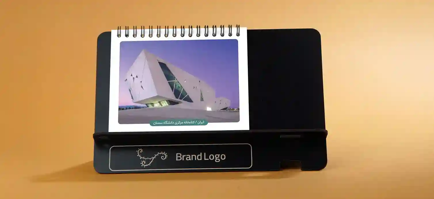 رستا به راحتی قابلیت نصب پلاک مولتیاستایل طلایی یا نقرهای و همچنین حک مستقیم لوگو یا نوشته را دارد. این ویژگی باعث میشود محصول نه تنها یک تقویم رومیزی باشد، بلکه ابزار تبلیغاتی قدرتمند برند شما نیز شود.